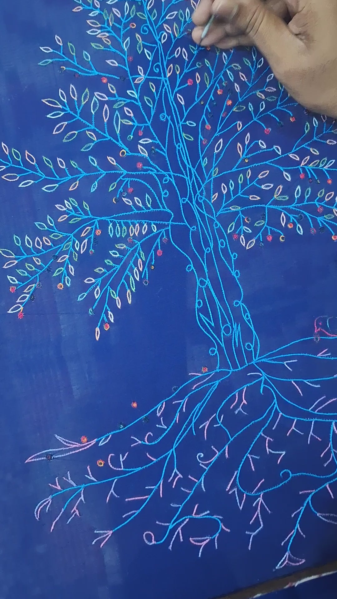 A RELAXED FIT OVERSIZED BLOUSE WITH BACK DETAILED EMBROIDERY AS WELL AS FRONT SLEEVES FINISHED BY HAND EMBROIDERY.